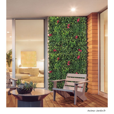 Transformez votre espace en un paradis floral avec notre mur végétal artificiel "Ile aux fleurs". Compact, avec des dimensions de 1 x 1 mètre, ce chef-d'œuvre en PE recyclé à 30 % offre une explosion de couleurs et de textures. Les diverses feuilles et fleurs, inséparables et inaltérables, créent un effet immédiat sans nécessiter le moindre entretien.