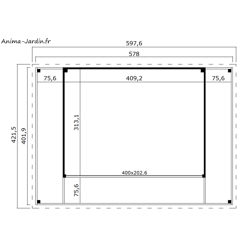 | Dimensions terrasse sur les 3 côtés | L.75,6 cm |
