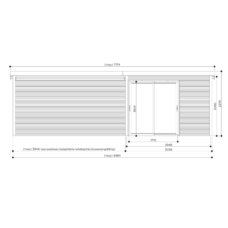 | Dimensions dalle béton | 3,036 + max. 3,948 x 3,036 m |