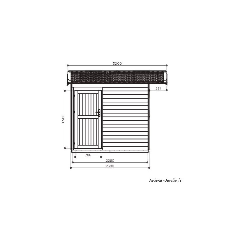 Superbe abri de jardin, d'une surface utile de 5,37 m², il vous permettra de stocker tout type d'objets, tondeuse, salon de jardin, outillage... À la droite de ce petit chalet, son avancée vous permettra de créer un réel espace à votre extérieur.