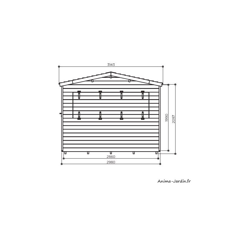 Découvrez notre charmant abri de jardin en bois, offrant une surface intérieure généreuse de 8,68 m² et une épaisseur de parois de 28 mm pour une solidité accrue. Doté d'une zone couverte comprenant une porte double avec une lucarne, cet abri intègre également un bûcher de 3,00 m².