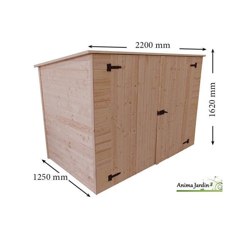 Superbe abri en bois, idéal pour le rangement de vos vélos ou bien encore pour abriter vos poubelles. Parfait pour protéger tous vos équipements des intempéries.