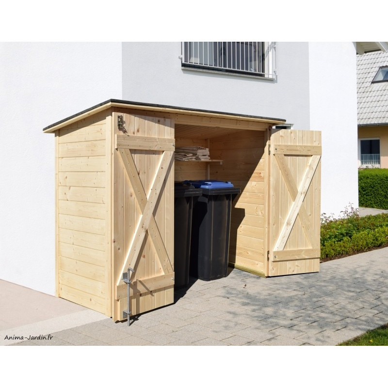 Superbe abri en bois, idéal pour le rangement de vos vélos ou bien encore pour abriter vos poubelles. Parfait pour protéger tous vos équipements des intempéries.