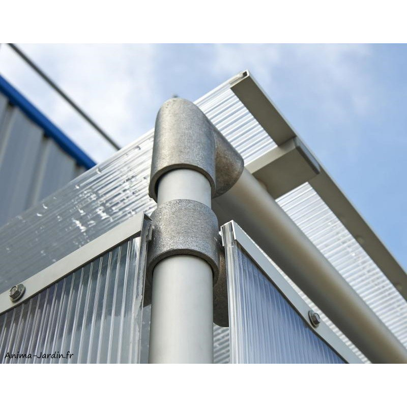 | Structure | Profilés tubulaires Ø 50 mm en aluminium anodisé. Profilés à assembler avec des raccords en aluminium moulé bloqués par des vis en inox |