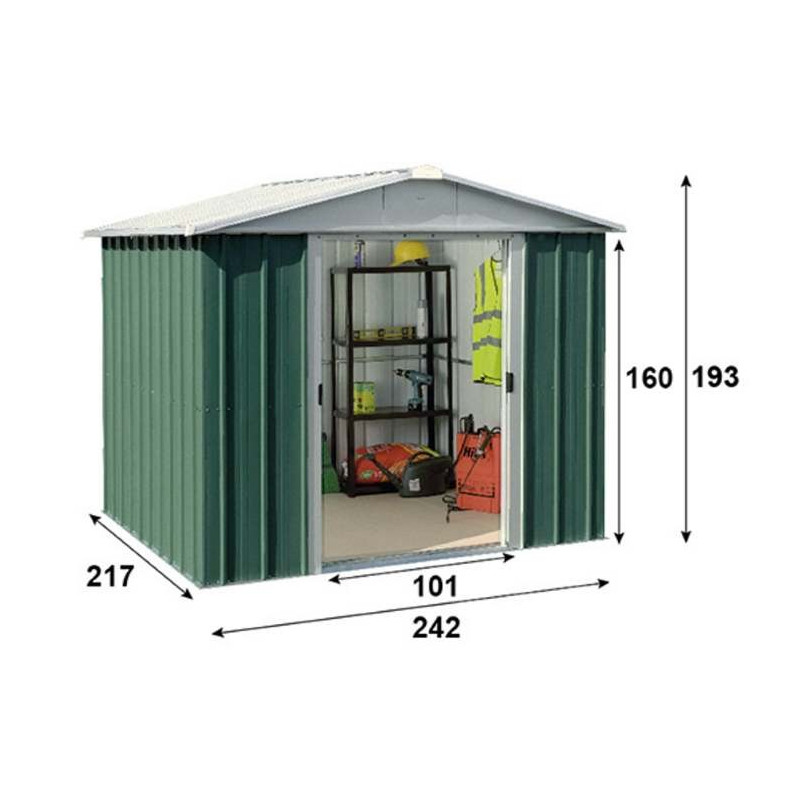 Très bel abri en métal vert d'une surface utile de 4,51 m². Idéal pour le rangement de vos équipements de jardins, de votre tondeuse, de votre vélo ou bien encore votre salon de jardin. Sa structure en acier galvanisé ne nécessite aucun entretien. Montage facile.