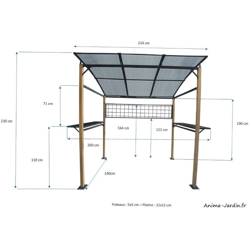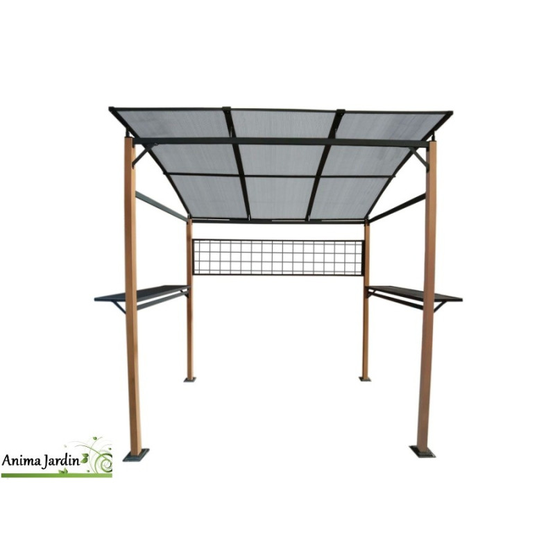 Créez un coin barbecue parfait dans votre jardin avec l'abri barbecue Darwin en aluminium. Avec une superficie généreuse de 4,15 m², ce pavillon offre amplement d'espace pour cuisiner et se divertir en plein air. Son toit en polycarbonate teinté protège efficacement contre les intempéries tout en laissant passer la lumière du soleil, créant ainsi un espace lumineux et accueillant. Les deux tablettes intégrées offrent un espace pratique pour préparer et servir vos plats, tandis que la barre supérieure est idéale pour suspendre vos ustensiles de cuisine. De plus, le grillage intégré permet de garder vos outils de barbecue à portée de main, facilitant ainsi votre expérience de cuisson en extérieur. Avec l'abri barbecue Darwin, profitez pleinement de moments conviviaux autour du barbecue, quel que soit le temps.