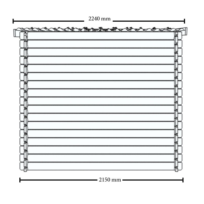 Madriers avec rainure languette en épicéa d'épaisseur 28 mm. Coupe chalet pour un assemblage des parois en angle solide et étanche. Coupe biseautée en bout de lames. |
