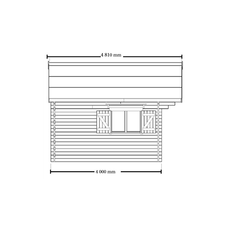Abri en bois d'une surface intérieure de 12,81 m². La grande baie vitrée de cet abri de jardin apportera une grande luminosité à l'intérieur de celui-ci. Installez cet abri dans votre extérieur et créez une véritable surface supplémentaire à votre habitation (bureau, salle de jeux, rangement...). Épaisseur de 44 mm et double vitrage.