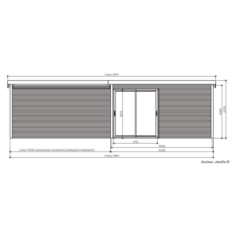 | Dimensions intérieures abri | L.3,948 x l.2,952 x H.2,080 m soit 11,65 m² |