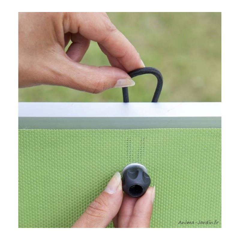 Fixez facilement vos brise-vues à œillets grâce au lot de 20 liens élastiques SNUGGER de Nortène. Conçus en élastique et polyester, ces tendeurs à boule assurent une fixation rapide et sans outil sur une balustrade, un balcon ou un grillage. Leur longueur ajustable permet d’adapter la tension pour un maintien parfait de votre brise-vue ou voile d’ombrage. Idéal pour fixer les modèles EVERLY, HAVANA et bien d'autres, ce système garantit une installation simple et durable en quelques minutes seulement.