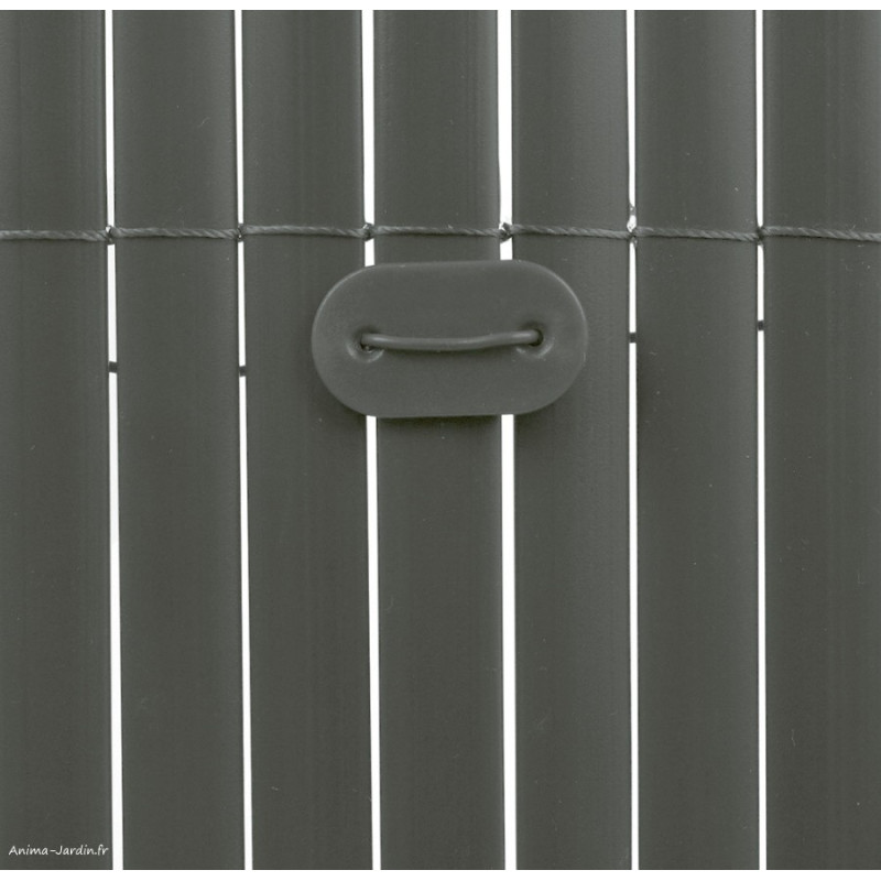 Ce système polyvalent est particulièrement adapté aux canisses PVC, brise-vue synthétiques et naturels tels que CLOSTA, PLASTICANE, REEDCANE, etc. La couleur transparente universelle convient à toutes les teintes d'écrans. Elle existe également en teinte verte, noire, grise, bambou et marron.