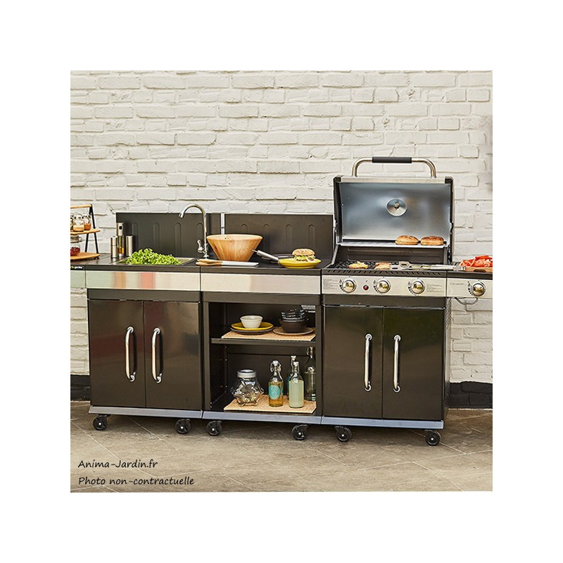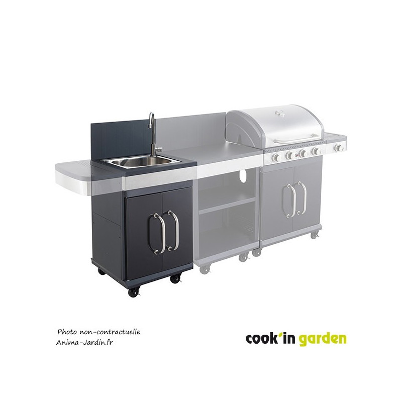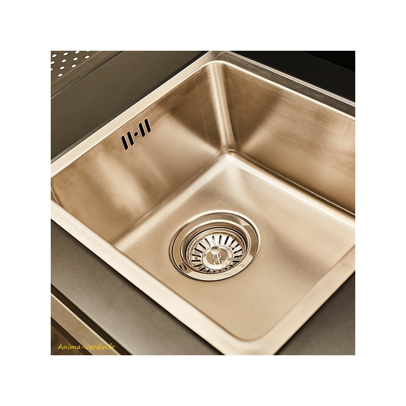 Installez cet évier dans votre extérieur et créez une jolie cuisine extérieure pour vos repas d'Été. Cet évier peut être assemblé directement au barbecue Fidgi 3 brûleurs ou au barbecue Fidgi 4 brûleurs. Le rangement sous l'évier vous permettra de stocker tous les ustensiles de votre choix (assaisonnements, pinces, gants...).