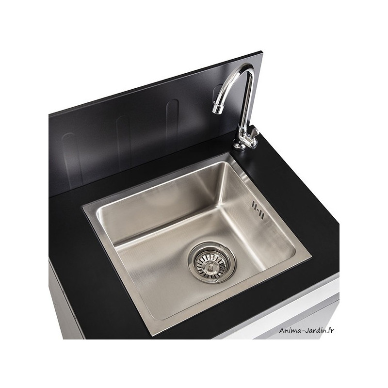 Superbe évier avec meuble de rangement. Parfait pour créer une très jolie cuisine extérieure pour vos repas d'Été. Produit pouvant s'adapter aux autres produit de la gamme "Fidgi".