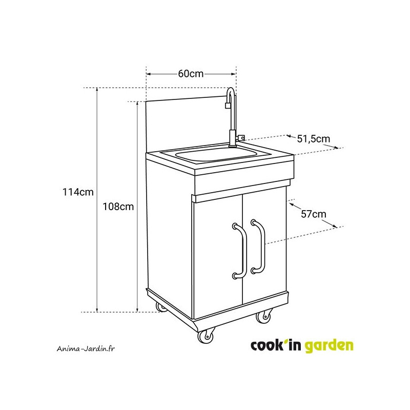 Évier avec meuble deux portes, Fidgi, Anima-Jardin.fr