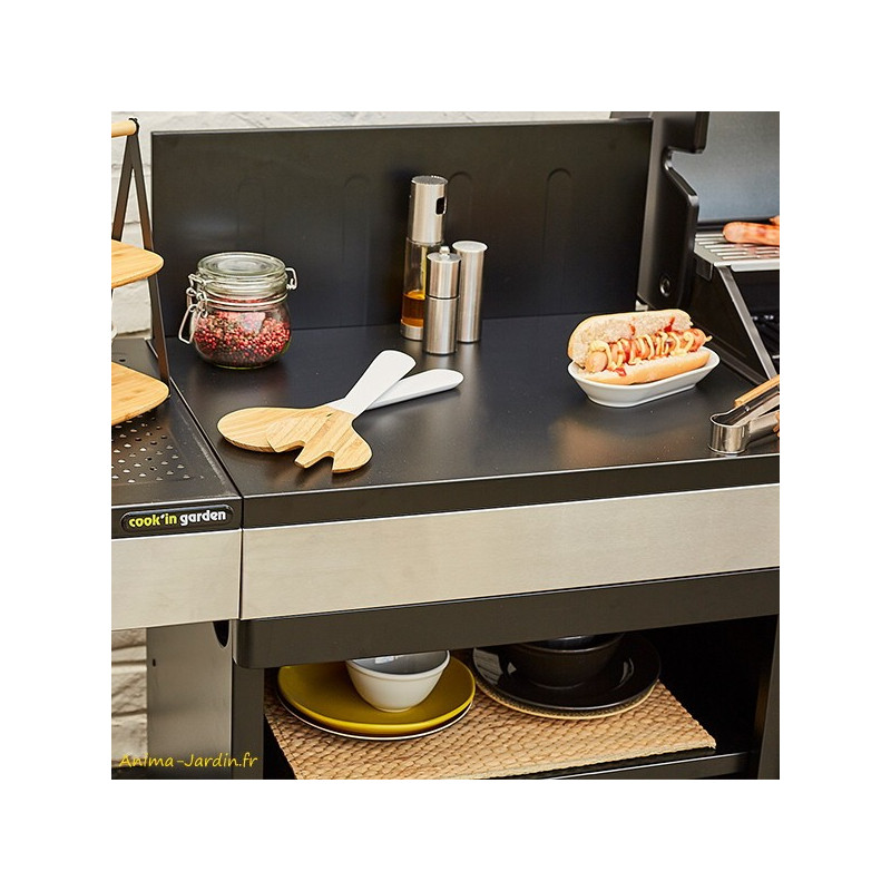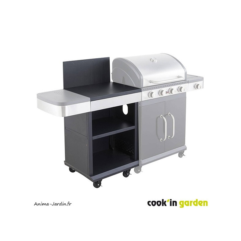 Superbe meuble d'appoint, il pourra vous servir comme plan de travail, de rangement grâce aux étagères ou bien de table pour plancha à poser. Il sera parfait pour créer une magnifique cuisine extérieure. Produit pouvant s'adapter aux autres produit de la gamme "Fidgi".