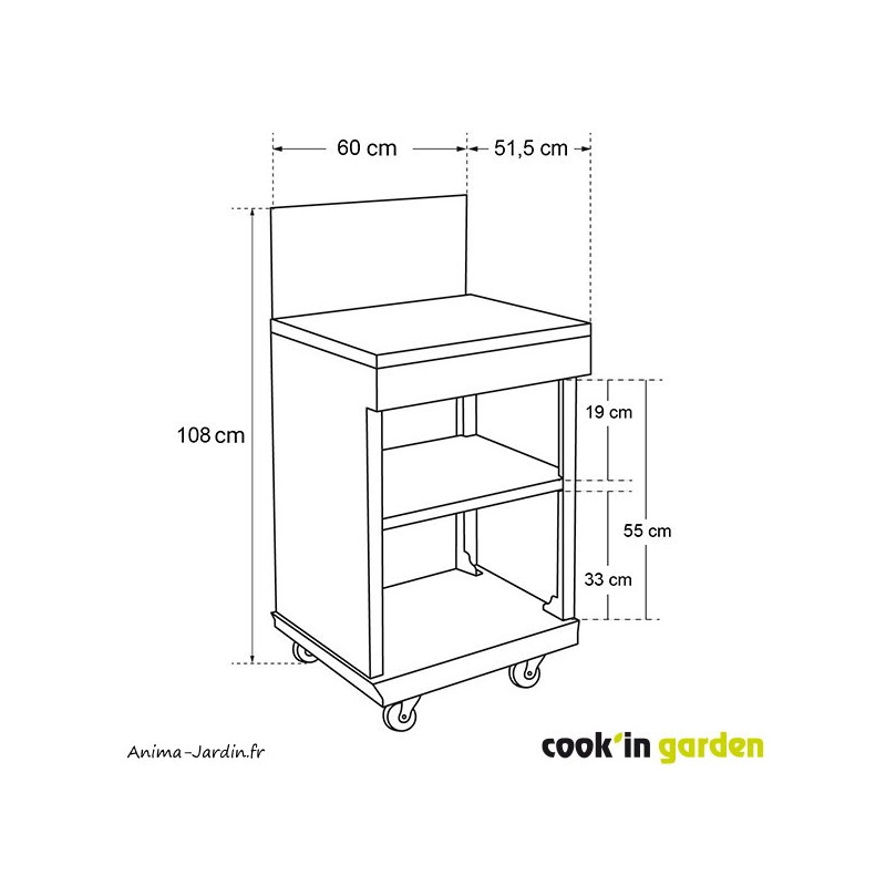 Il sera parfait pour créer une magnifique cuisine extérieure. Cette desserte est déplaçable grâce à ses 4 roues.