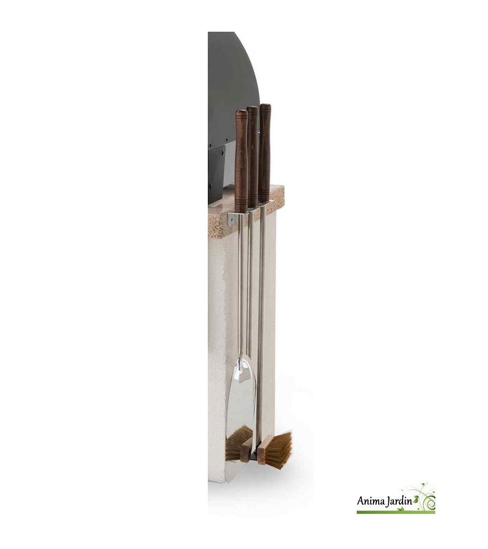 Fabriqués en acier inoxydable robuste pour un usage alimentaire, ces outils sont conçus selon les normes de qualité les plus élevées. Le set est livré avec un support mural à fixer sur un mur ou directement sur votre barbecue ou four à pizza pour un rangement pratique.