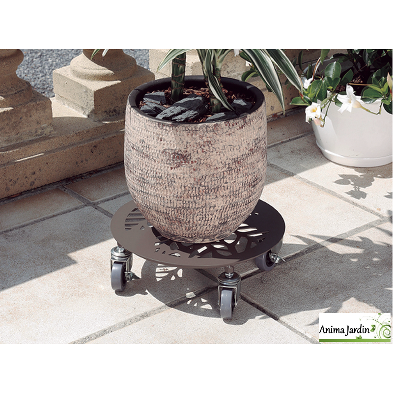 Support pots à roulettes en métal pour déplacer les plantes sans effort. Extensible pour s'adapter aux pots de Ø 30 à 42 cm. Couleur: gris