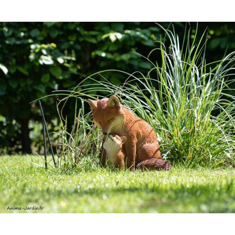 Très belle statue représentant un renard de taille réelle pour décorer votre jardin. Sujet en résine et fibre de verre parfait pour créer une scène grandeur nature dans votre jardin. Peint à la main (superbe finition) avec une peinture de qualité prévue pour affronter les aléas météo. Conception artisanale.