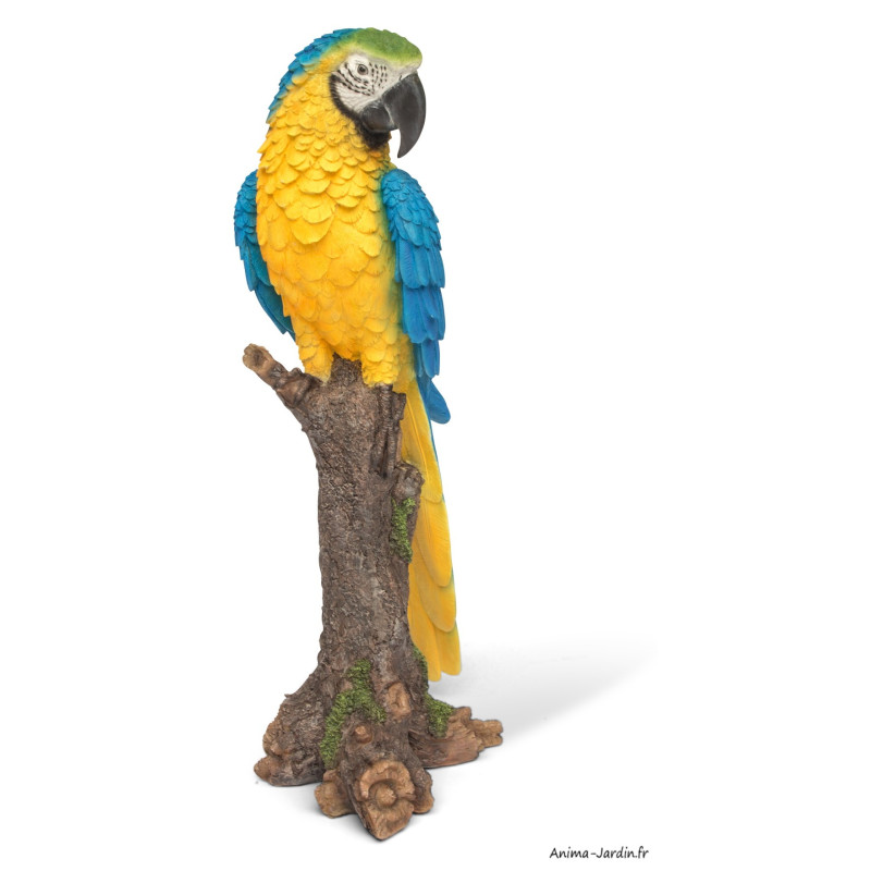 Embellissez votre extérieur grâce à cet impressionnant perroquet jaune d'une hauteur de 68 cm. Ses plumes très réalistes, bleue et verte viennent sublimer le caractère de ce perroquet.