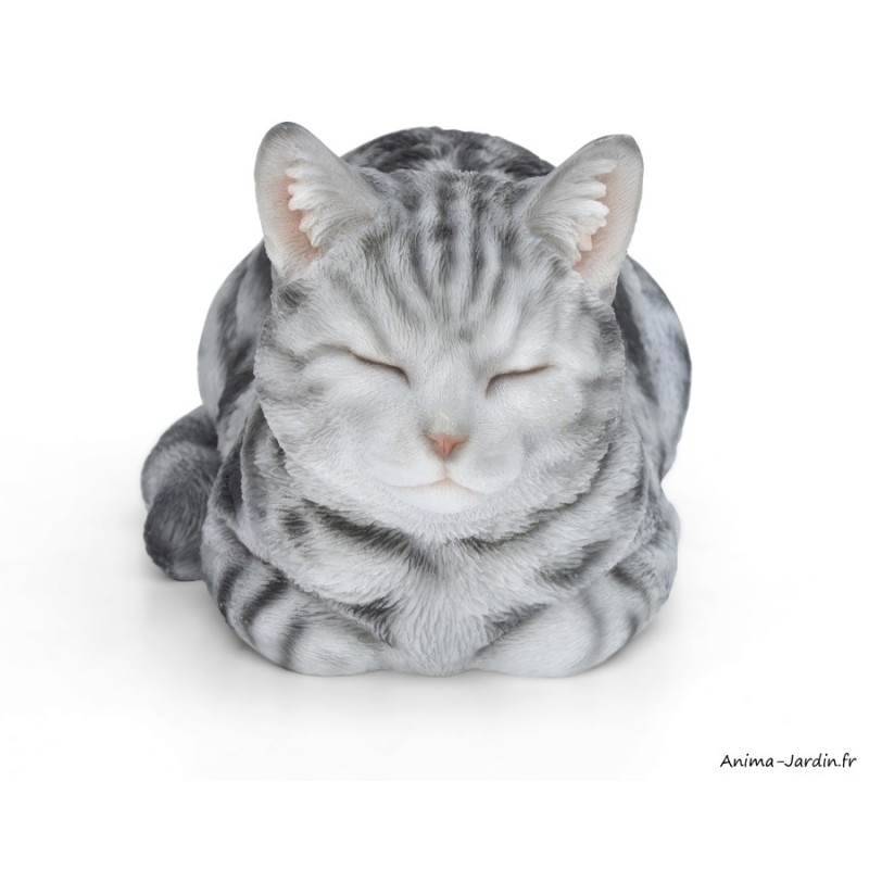 Laissez-vous séduire par la tendresse de ce chat de 35 cm de longueur dormant paisiblement. Apportez une touche agréable à votre décoration extérieure.