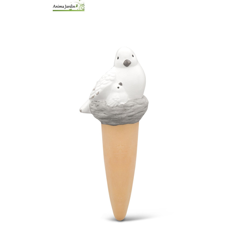 Apportez une touche de tendresse à vos plantes avec cette réserve d'eau en forme d'oiseau, représentant une maman oiseau et son petit, en céramique. Parfaite pour un arrosage continu en extérieur ou intérieur, elle dispose de dimensions compactes (L.6,5 x l.6 x H.15,5 cm) et d’une belle finition blanc et terre cuite. Cette réserve d'eau ajoute non seulement du charme à vos pots de fleurs, mais elle est également conçue pour résister aux intempéries, ce qui la rend idéale pour une utilisation prolongée en extérieur. Son entretien est simple : un nettoyage à l'eau savonneuse et un chiffon doux suffit pour préserver son aspect délicat.