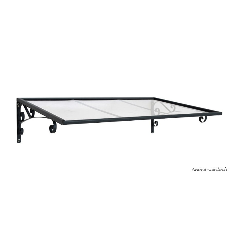 Découvrez notre marquise Vénus d'une longueur de 135,5 cm. Son allure traditionnelle saura protéger votre entrée de toutes intempéries et des rayons UV.