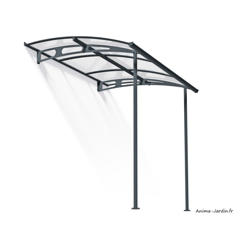 Superbe abri de porte ou baie vitrée Vega de couleur grise. Celle-ci protègera votre devanture des intempéries et des UV grâce à sa structure solide et son vitrage en acryliques cristallins.