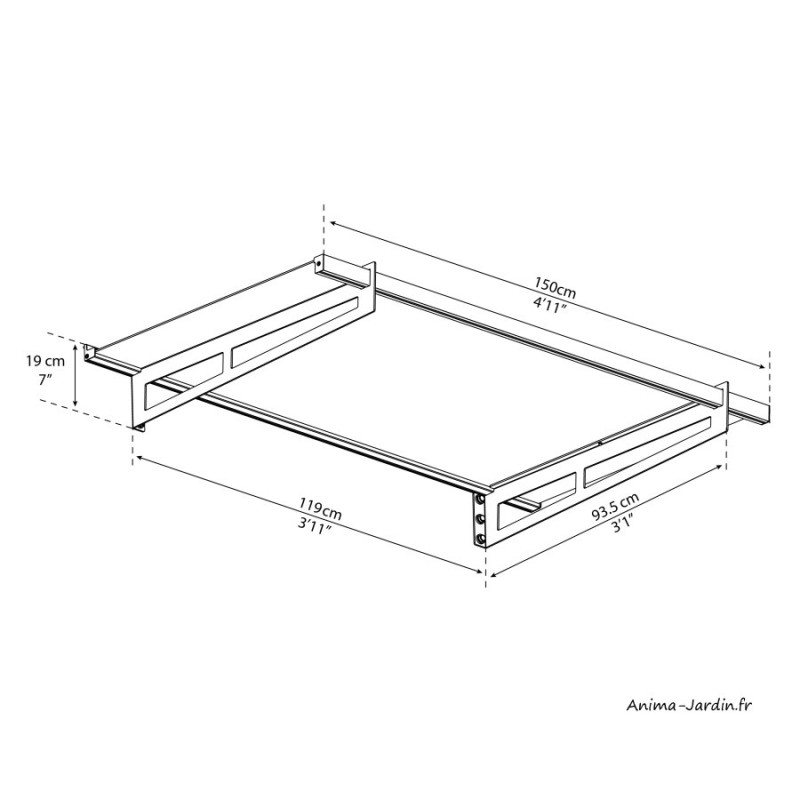 - L.150 x P.93,5 x H.19 cm La dimension est à sélectionner au-dessus de la quantité souhaitée. |