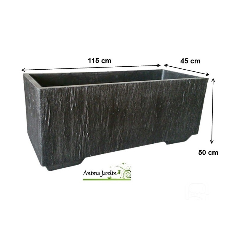 Grand bac, grande jardinière en béton ciré 115 cm. Les bétons cirés, coulés, avec relief extérieur façon ardoise sont très élégants. Raffinement et esprit contemporain: des lignes épurées et véritablement "tendance", idéal pour agrémenter terrasses et jardins.