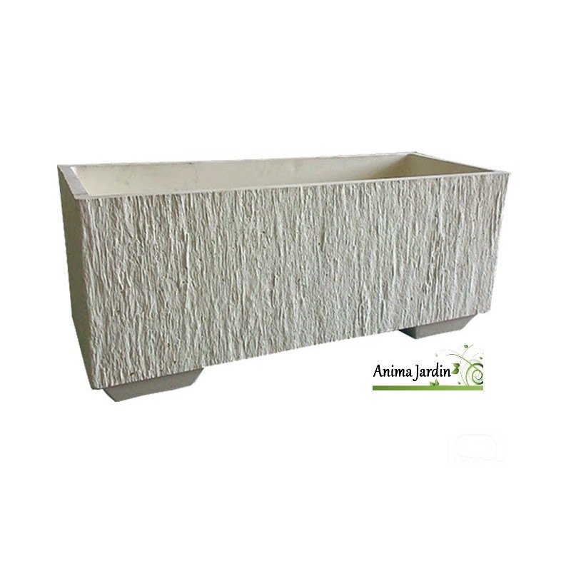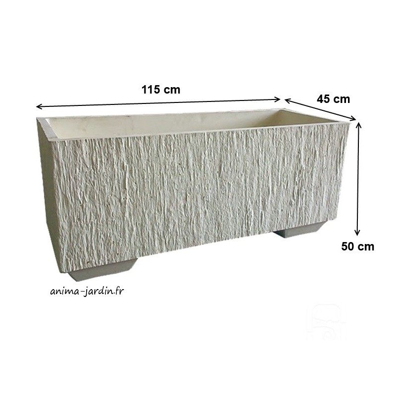 Grand bac, grande jardinière en béton ciré 115 cm. Les bétons cirés, coulés, avec relief extérieur façon ardoise sont très élégants. Raffinement et esprit contemporain: des lignes épurées et véritablement "tendance", idéal pour agrémenter terrasses et jardins.