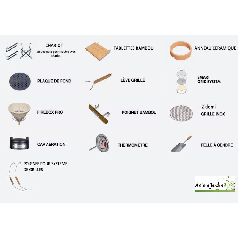 Ce modèle est équipé du Système SGS (Smart Grid System), permettant une modularité optimale pour une cuisson multi-niveaux. Il inclut également, une firebox pro, un anneau céramique, une poignée en bambou, un thermomètre intégré, une pelle à cendres, ainsi qu’un cap aération pour un contrôle précis de la température.