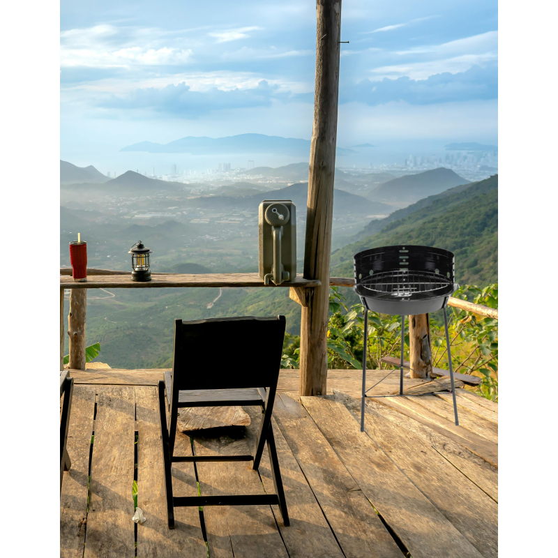 Le barbecue à charbon de bois rond Flam est un modèle compact, idéal pour les petits espaces comme un balcon ou une terrasse. Sa structure en acier traité anti-corrosion lui assure une excellente résistance aux intempéries et une bonne durabilité. Avec son design moderne et sa finition noire, il s'intègre parfaitement dans tout environnement extérieur. Il dispose d’une grille de cuisson de 29 cm de diamètre, parfaite pour griller viandes et légumes lors de vos repas estivaux. Son format léger et pratique, le rend facilement transportable, ce qui en fait un allié parfait pour les pique-niques et les petits rassemblements.