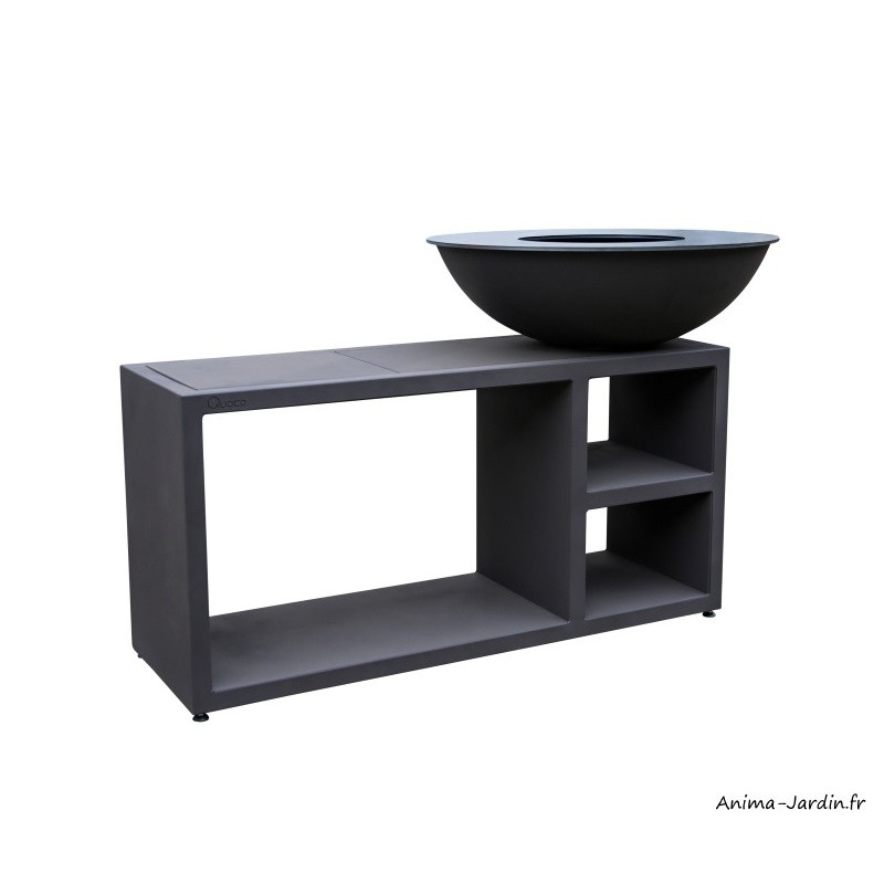 Découvrez le braséro Tavolo Large en acier noir avec meuble intégré, un équipement 3 en 1 signé Quoco, parfait pour transformer vos repas en extérieur en moments conviviaux inoubliables. Avec un diamètre de 94 cm, ce braséro combine les fonctions de braséro, barbecue, et plancha pour répondre à toutes vos envies culinaires.