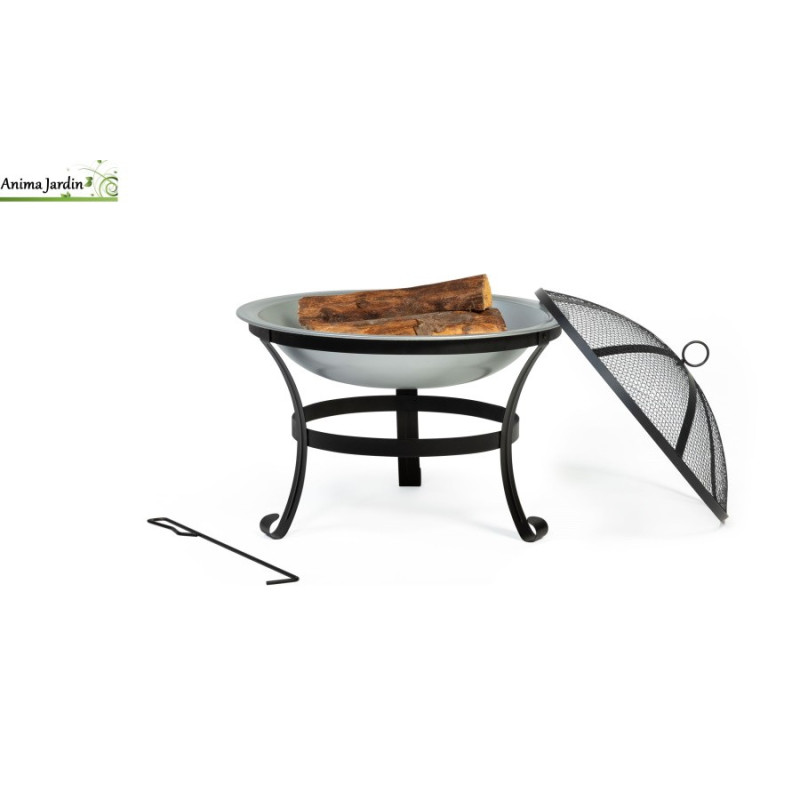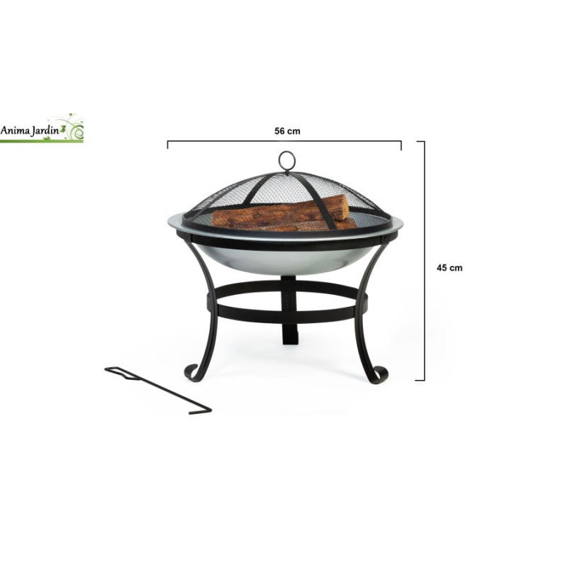 Les dimensions du brasero sont de L.56 x l.56 x H.45 cm, avec une épaisseur de métal de 0,5 mm pour le bol et de 1,2 mm pour les pieds, assurant une stabilité et une résistance optimale. Le brasero est équipé d'un couvercle anti-projection, pour une utilisation en toute sécurité.