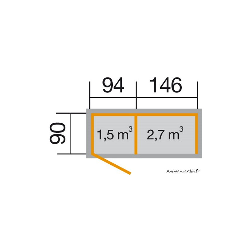 | Dimensions de la remise | L.0,94 x P.0,90 x H.1,93 m soit 0.84 m² |