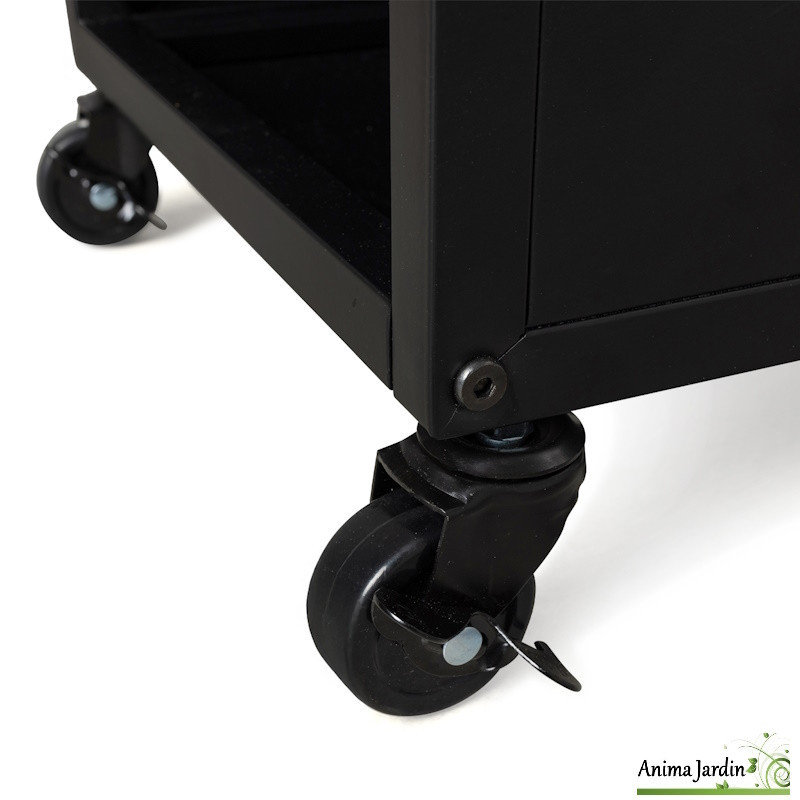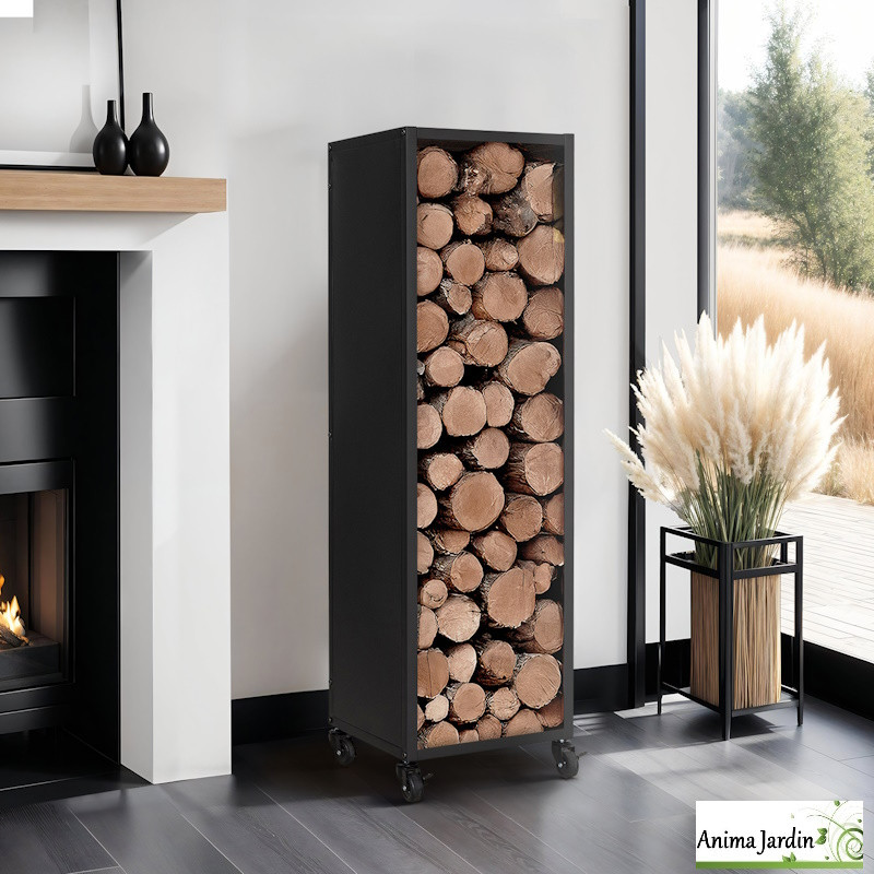Son format vertical optimise l’espace, tandis que ses 4 roulettes pivotantes, dont 2 avec freins, assurent une mobilité parfaite et sécurisée. La zone de stockage généreuse (L.32,5 x l.32,5 x H.108 cm) permet de garder vos bûches à portée de main, avec style.