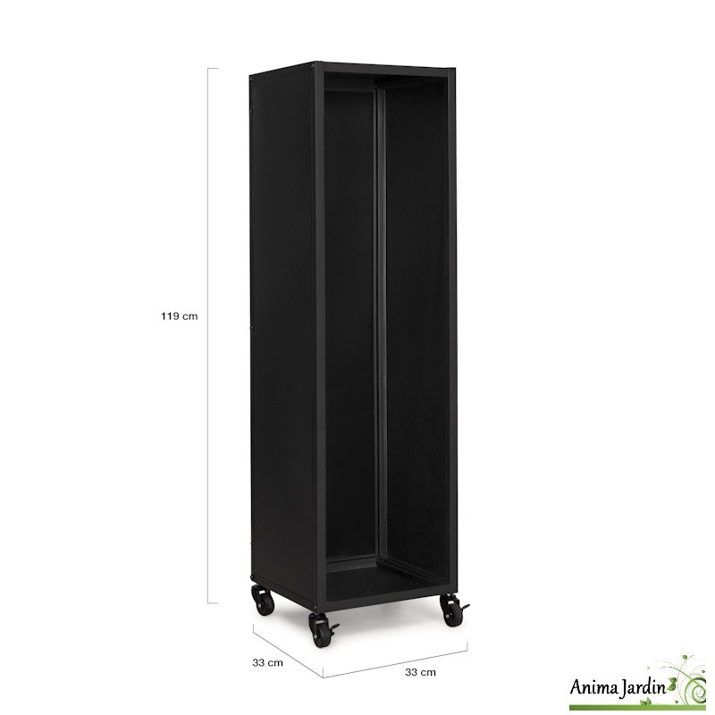 Le range bûche vertical en acier noir, H.112 cm, allie élégance et praticité pour un rangement intérieur optimal. Dimensions : L.33 x l.33 x H.112 cm. Assemblage rapide et simple.