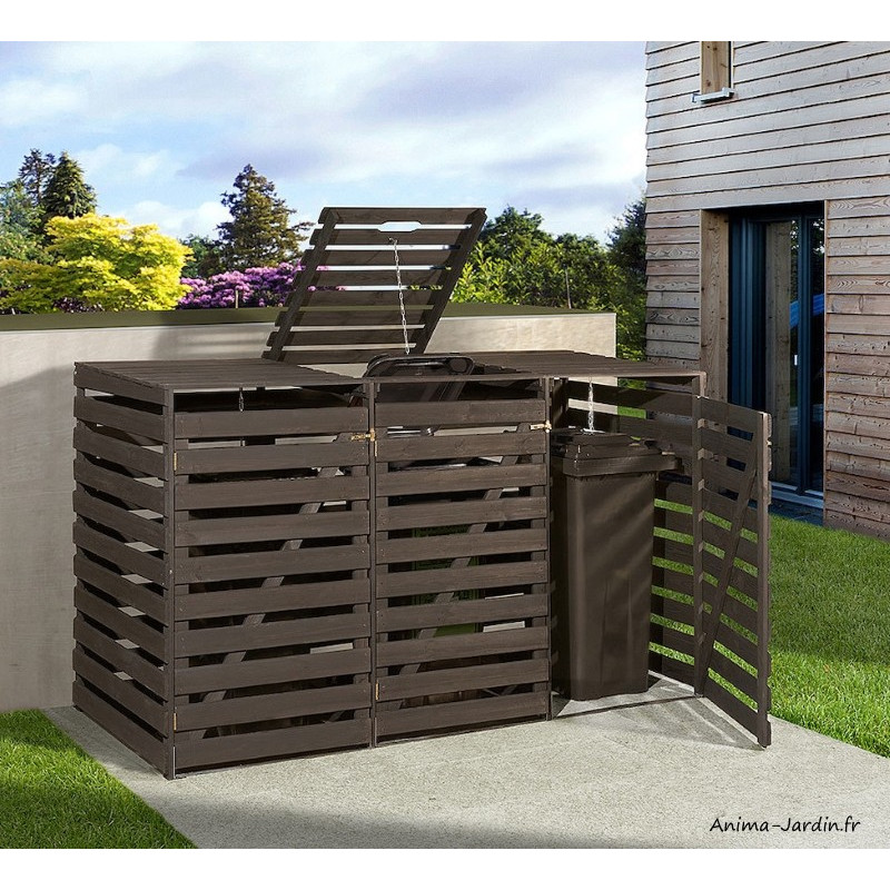 Cache-poubelles en bois, 219 cm, 3 poubelles, Anima-Jardin.fr