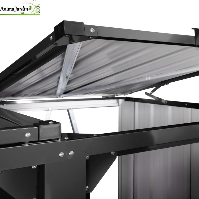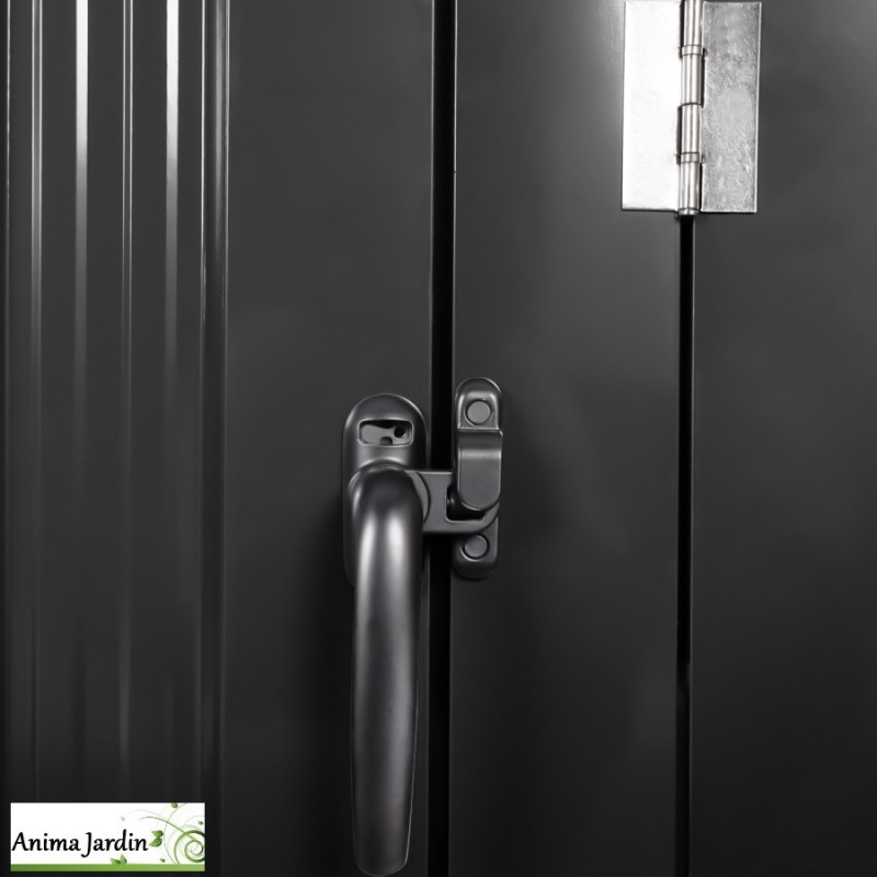 Avec des dimensions globales de L.147 x l.80 x H.120 cm, chaque espace poubelle mesure L.62 x l.73 x H.110 cm, offrant suffisamment d'espace pour deux poubelles de grande capacité. Les couvercles relevables avec une ouverture de 49 cm facilitent le dépôt des déchets, tandis que les portes avant permettent un accès pratique pour vider les poubelles. Le coloris gris anthracite ajoute une touche élégante et moderne à votre jardin ou allée.