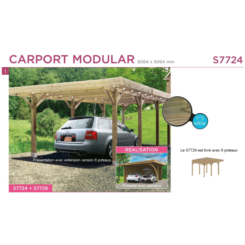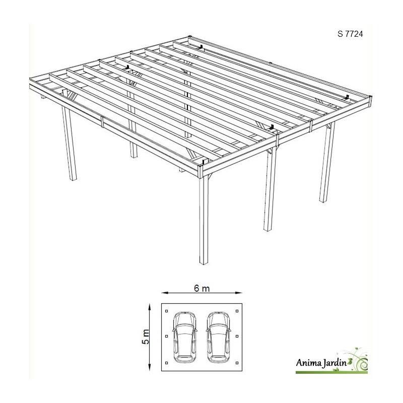 Abri Carport S7724 bois autoclave, achat. 6 m x 5 m