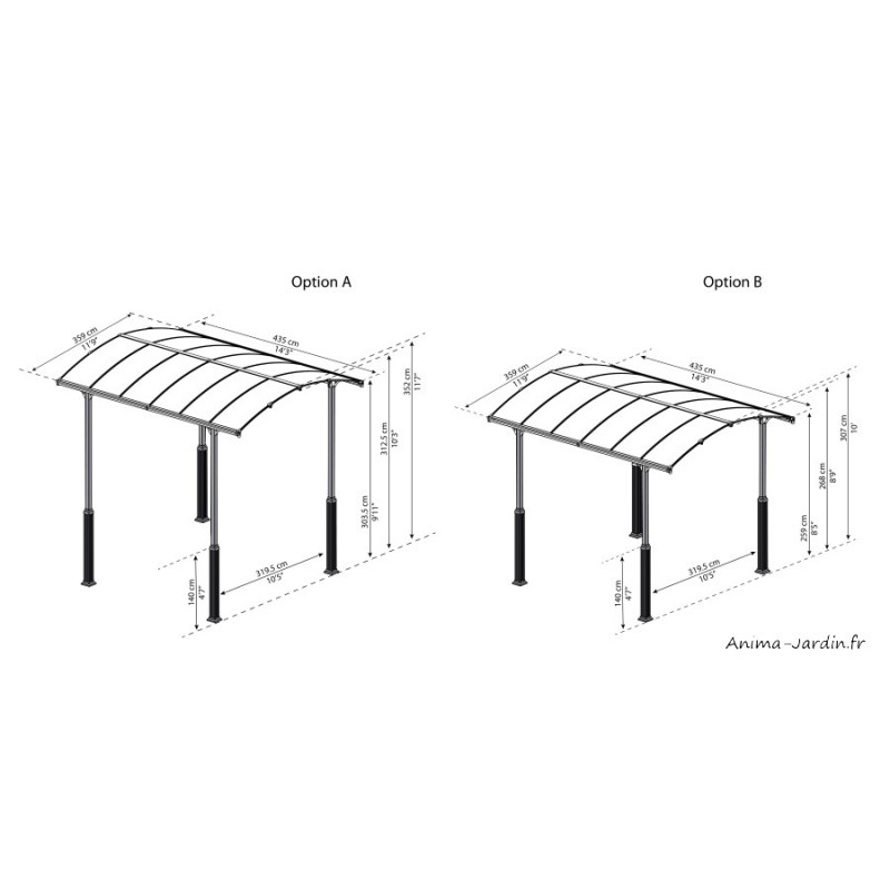 Optez pour ce grand carport en aluminium. Avec une hauteur réglable de 307 à 352 cm, ce carport sera idéal pur vos véhicules haut. Trouvez votre carport idéal grâce à ces différentes dimensions disponibles. Son vitrage en polycarbonate est ultra-résistant aux fortes intempéries ainsi qu'aux rayons UV.
