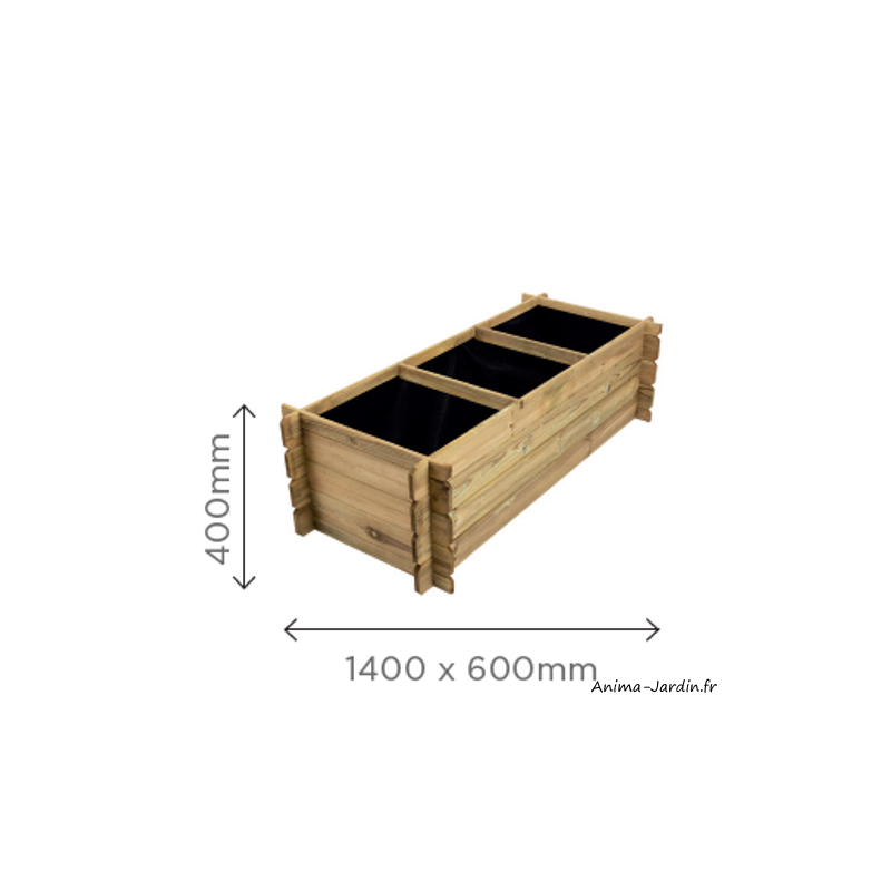 Ce bac à pour dimensions 140 x 60 x 40 cm et est traité autoclave.