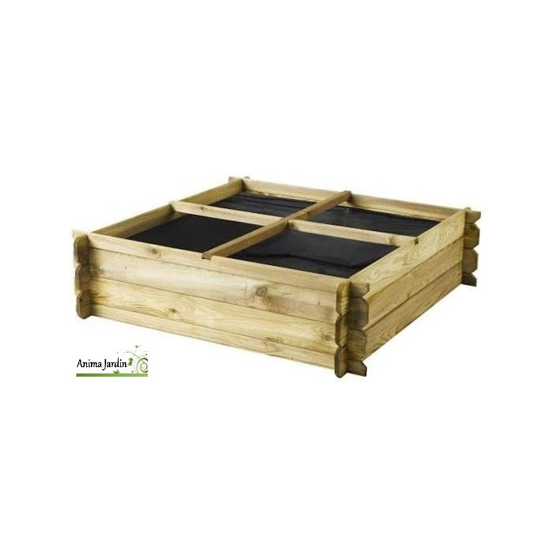 Carré potager 4 cases. Idéale pour avoir à portée de mains quelques aromates, fruits ou légumes sur une surface réduite. De la culture hors sol nécessitant peu d'entretien et à porter de mains. Parfait pour les petits espaces.
