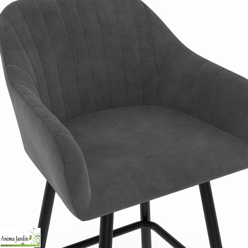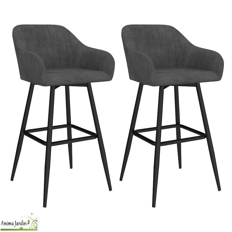 Donnez du caractère à votre espace bar ou cuisine avec le lot de 2 fauteuils hauts Ariana. Leur revêtement en velours gris foncé apporte une touche élégante et chaleureuse, tandis que leurs pieds en métal noir assurent une stabilité irréprochable.