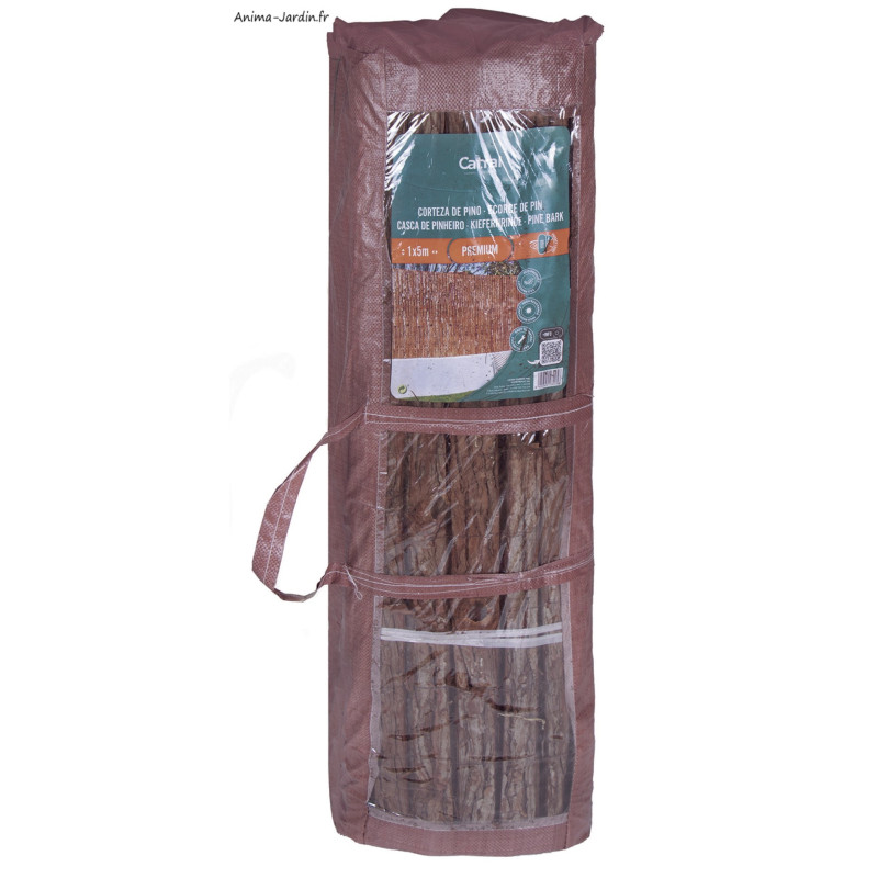 Explorez la canisse d'écorces de pin Corsafence, garantissant une occultation de 4/5. Constituée de lames d'écorce de pin naturel, savamment tissées avec du fil de fer plastifié, cette canisse est proposée en deux hauteurs : 1 m et 1,50 m.