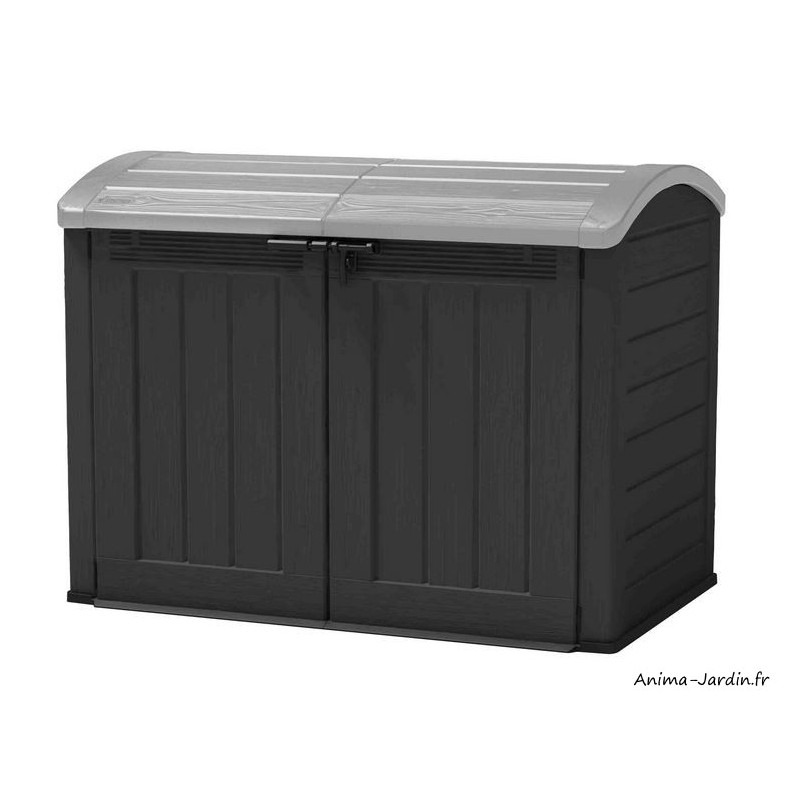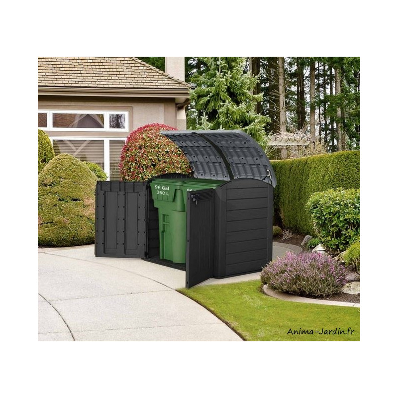Le grand volume de ce coffre, la double porte et le système de vérins permettent une utilisation en tant que cache-poubelles ou bien encore en tant qu'abri vélos.