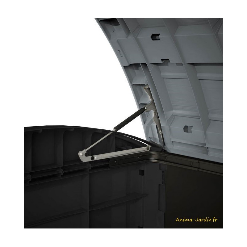 Coffre de rangement extérieur en résine, idéal pour stocker tous les objets de votre choix (jouets d'enfants, coussins, outils de jardins...). Le grand volume de ce coffre, la double porte et le système de vérins permettent une utilisation en tant que cache-poubelles ou bien encore en tant qu'abri vélos. Ne nécessite pas d'entretien. Facile et rapide à assembler.
