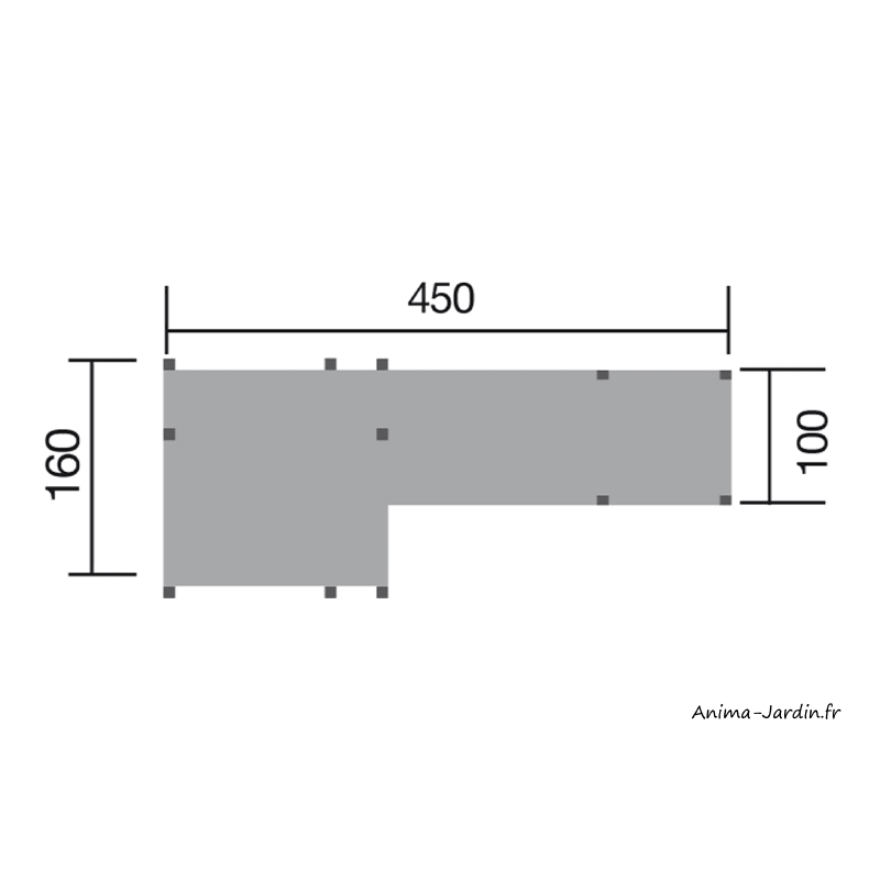 L.4,50 x P.1,60 x H.3,31 m H.3,31 m H.1,50 m H.60 cm 6 x 6 cm 2,90 m |