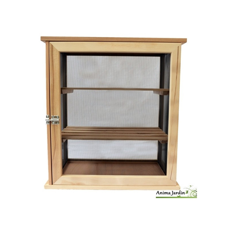 Superbe conservateur de nourriture, garde manger en hêtre, avec sa toile moustiquaire en aluminium plastifié empêchant toute intrusion d'insectes, mouches, guêpes, souris... livré avec 2 étagères bois (clayette)